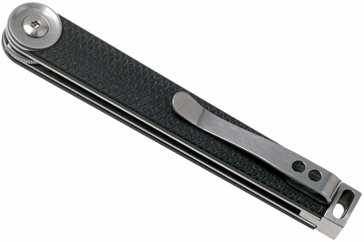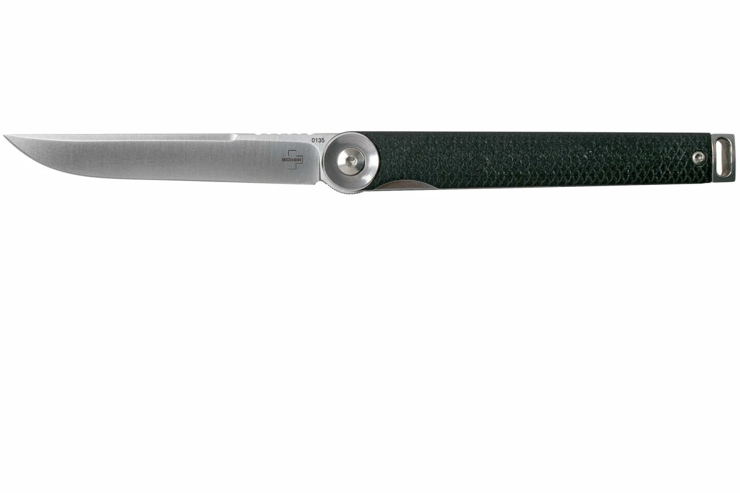 Das Böker Plus Kaizen Black 01BO390 ist ein schlankes und leichtgewichtiges Herrenmesser. Der Name und die Formen erinnern sofort an ein japanisches Design. Die Öffnung erfolgt ziemlich speziell, sie funktioniert wie eine Art Flipper. Jedoch ohne dass der Flipper herausragt. Durch die Riffelung hat man einen hervorragenden Halt. Dank dieser Konstruktion sieht das Messer sehr clean aus.