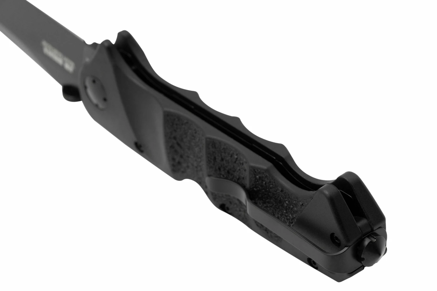 Das Böker Plus RBB 2.0, 01BO496 ist ein relativ großes, taktisches Taschenmesser, das von Jim Wagner entworfen wurde. Was sofort auffällt, ist der Griff, der eine grobe Struktur und Fingerrillen aufweist. Dadurch bietet der RBB 2.0 jederzeit hervorragenden Grip. Die große Klinge lässt sich leicht mit einer Hand durch das Daumenloch öffnen.