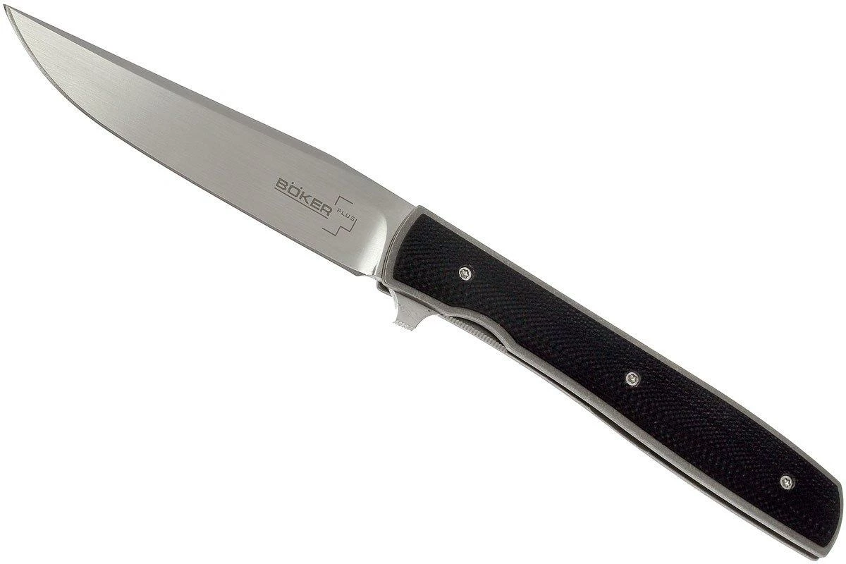 Das Böker Plus Urban Trapper ist ein sehr schlankes und elegantes Taschenmesser, das von Brad Zinker entworfen wurde. Aufgrund der geringen Größe und des Titanframes ist dieses Messer auch sehr leichtgewichtig. Das Messer lässt sich mithilfe des Flippers problemlos einhändig öffnen. Die Klinge aus VG10-Stahl ist auf dem Rücken schön abgerundet. Ein Liner-Lock hält die Klinge in geöffneter Position fest in ihrer Position. Alles in allem ist es ein ideales Herrenmesser.