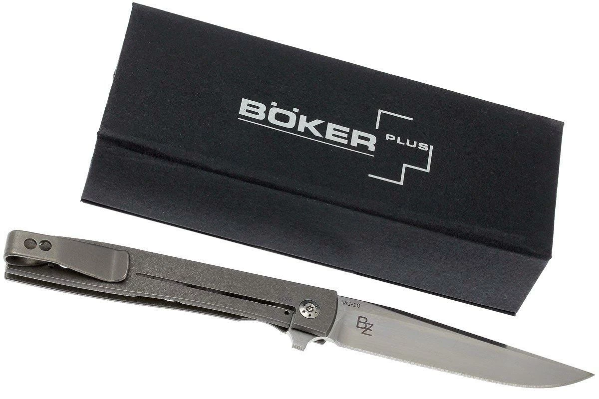 Das Böker Plus Urban Trapper ist ein sehr schlankes und elegantes Taschenmesser, das von Brad Zinker entworfen wurde. Aufgrund der geringen Größe und des Titanframes ist dieses Messer sehr leichtgewichtig. Es lässt sich mithilfe des Flippers problemlos einhändig öffnen. Die Klinge aus VG10-Stahl ist auf dem Rücken schön abgerundet. Ein Frame-Lock hält die Klinge in geöffneter Position in ihrer Position. Alles in allem ist es ein ideales Herrenmesser.