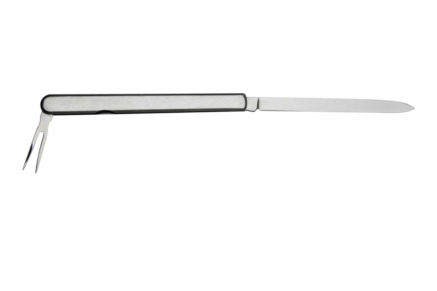 Das Fox Camping Knife 292/2 ist ein handliches Taschenmesser. Dieses Taschenmesser wurde speziell für das Camping entwickelt. Die Klinge ist recht lang und sehr schlank, perfekt zum Auftragen eines Sandwiches oder zum Schneiden von Gemüse und Obst. An der Rückseite des Messers befindet sich eine praktische, ausklappbare Gabel.