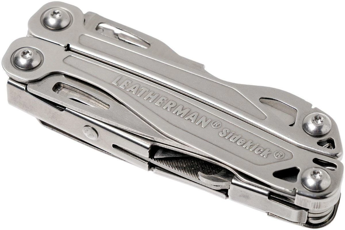 Ein Multitool mit Zange und 2 Messern. Trotz seiner vielfältigen Möglichkeiten ist der Sidekick ein ziemlich kompaktes Werkzeug, das gut in der Hand liegt und auch noch in der Hosentasche getragen werden kann. Das Messer und die Säge können dank Blockierung sicher verwendet werden. Der Sidekick ähnelt stark dem Leatherman Wingman. Dieses Tool hat statt einer Säge eine Schere. Neben einem glatten Messer und der Säge verfügt der Sidekick auch über ein kurzes Messer mit Wellenschliff.