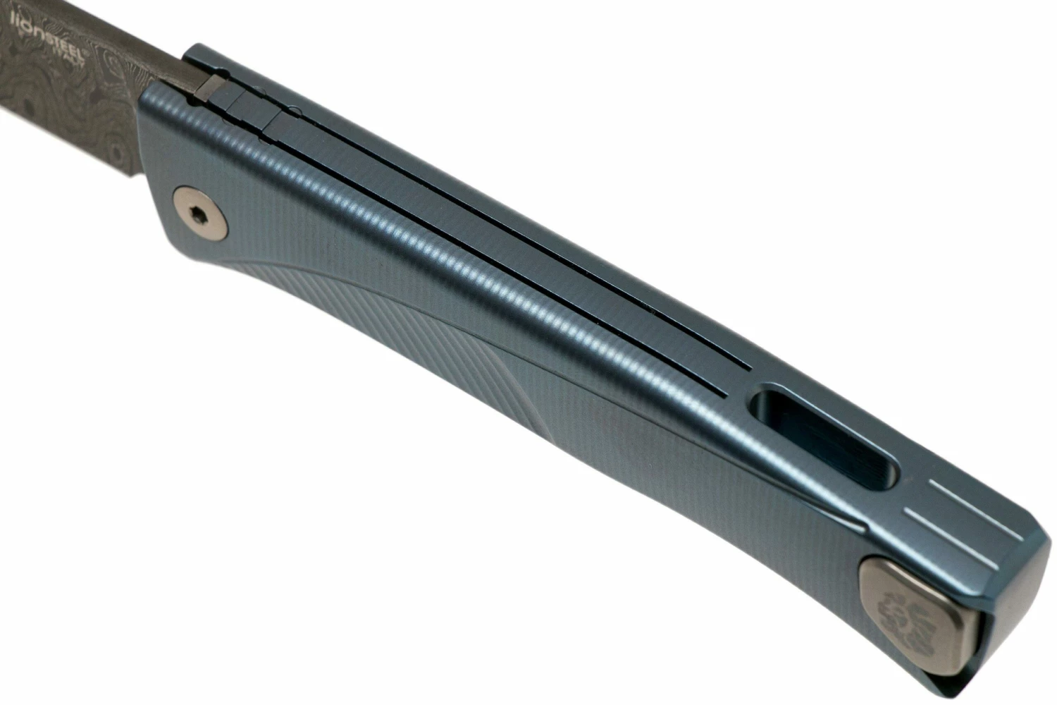 LionSteel Thrill TL-D-BL Damascus, Blaues Titan Integral Slipjoint Taschenmesser