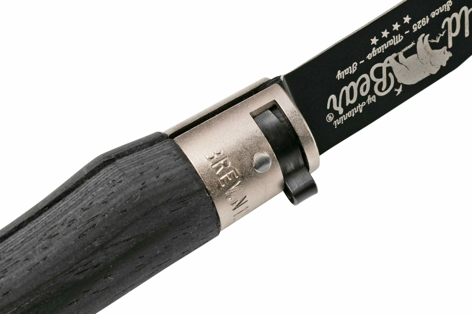 Das Old Bear Classical Total Black L ist ein klassisches Taschenmesser aus Italien. Die Klinge öffnest du ganz einfach mithilfe eines Nagelschlitzes. Das machst Du mit zwei Händen, dadurch kann man das Messer nahezu überall in Europa legal mitführen. Du kannst das Messer sowohl offen als auch geschlossen blockieren. Dies geschieht über den Lupo-Lock-Mechanismus, eine Ringverriegelung, die wir von ähnlichen Messermarken kennen, dann jedoch einhändig zu bedienen.