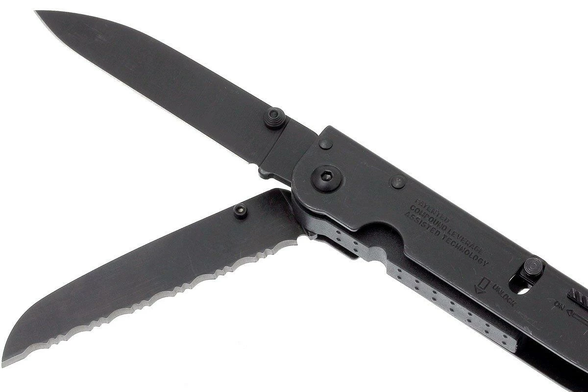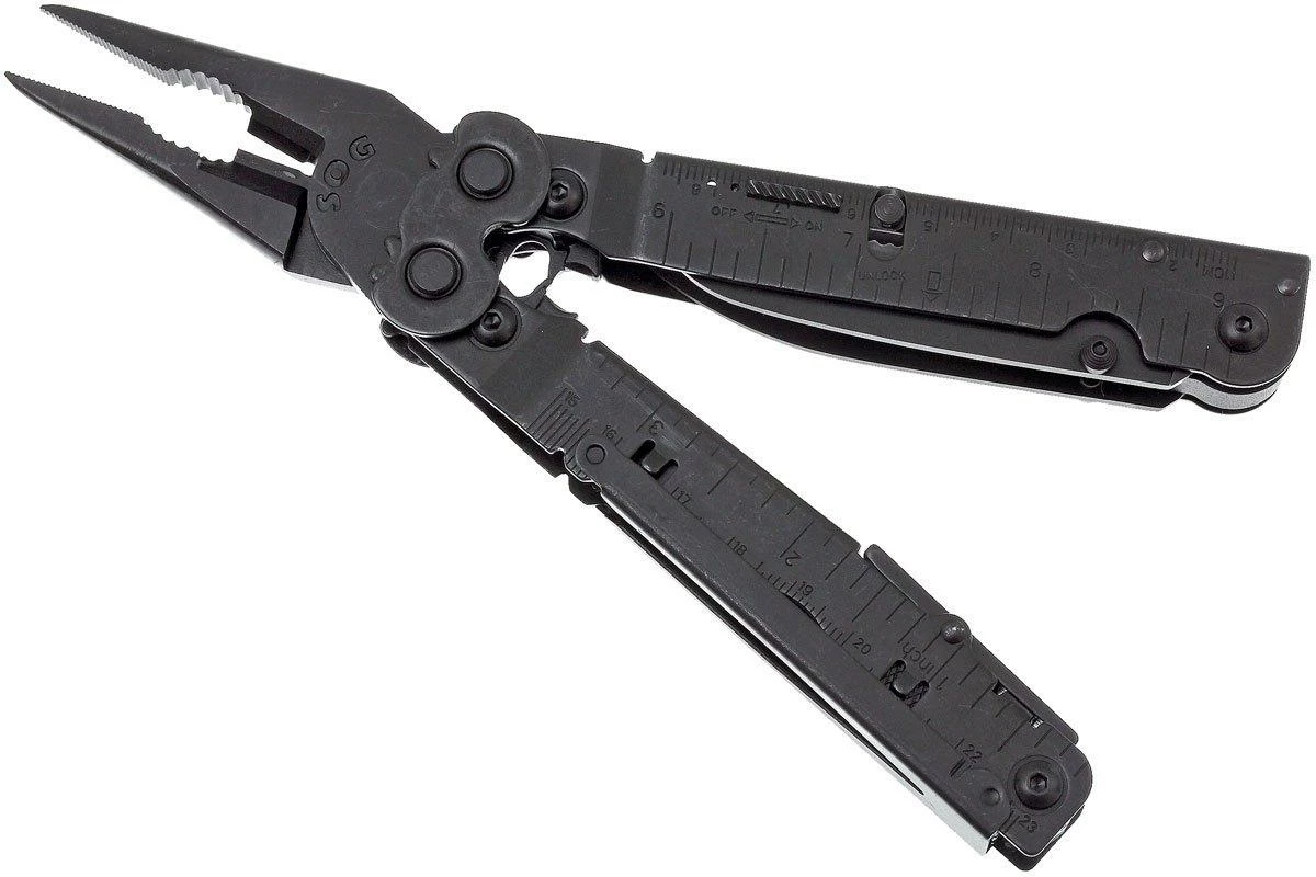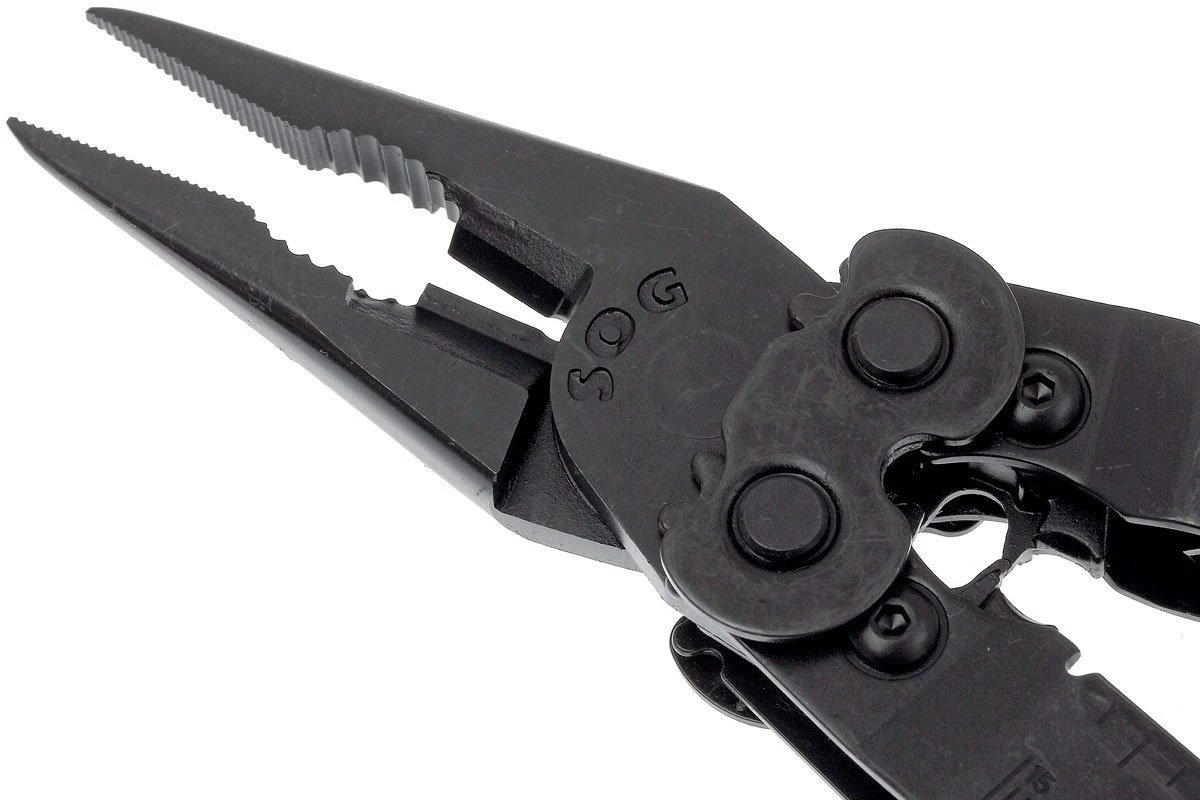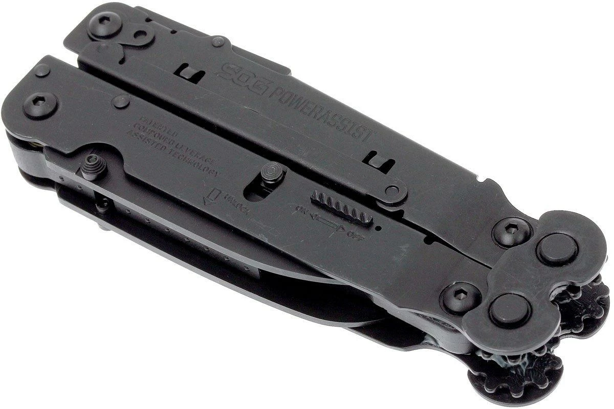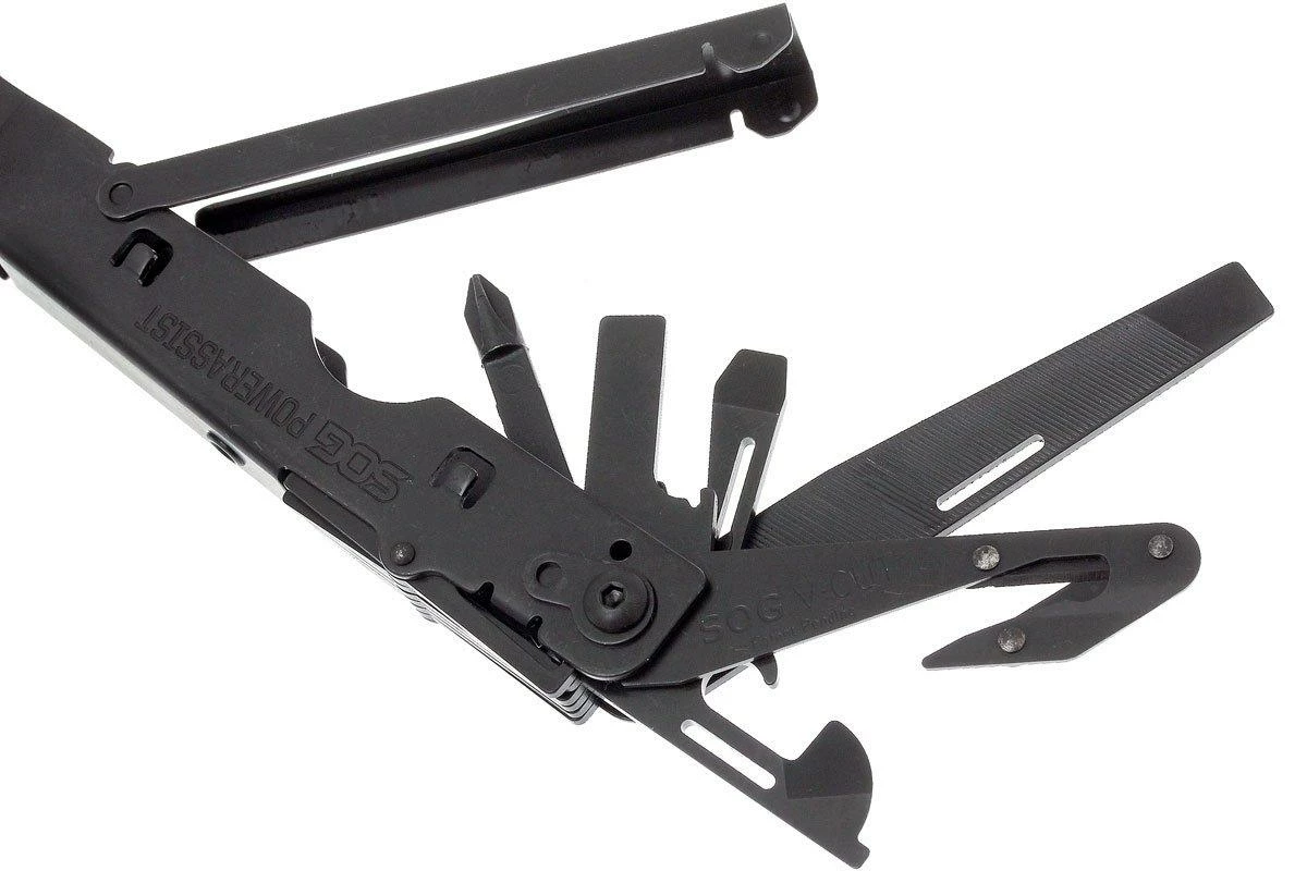 Das SOG Powerassist B66 ist ein nützliches Multitool mit 16 Werkzeugen. Das Multitool ist mit zwei Messern mit assisted-opening ausgestattet. Eine integrierte Feder unterstützt beim Öffnen des Messers. Dieses Messer ist mit einer Verriegelung ausgestattet, sodass es sich nicht versehentlich öffnen lässt. Dank der Zahnung des Zangenscharniers lässt sich noch mehr Druck auf die Zange ausüben. Genannt wird dieses Prinzip SOG Compound Leverage. Dieses Multitool enthält insgesamt 16 Werkzeuge.